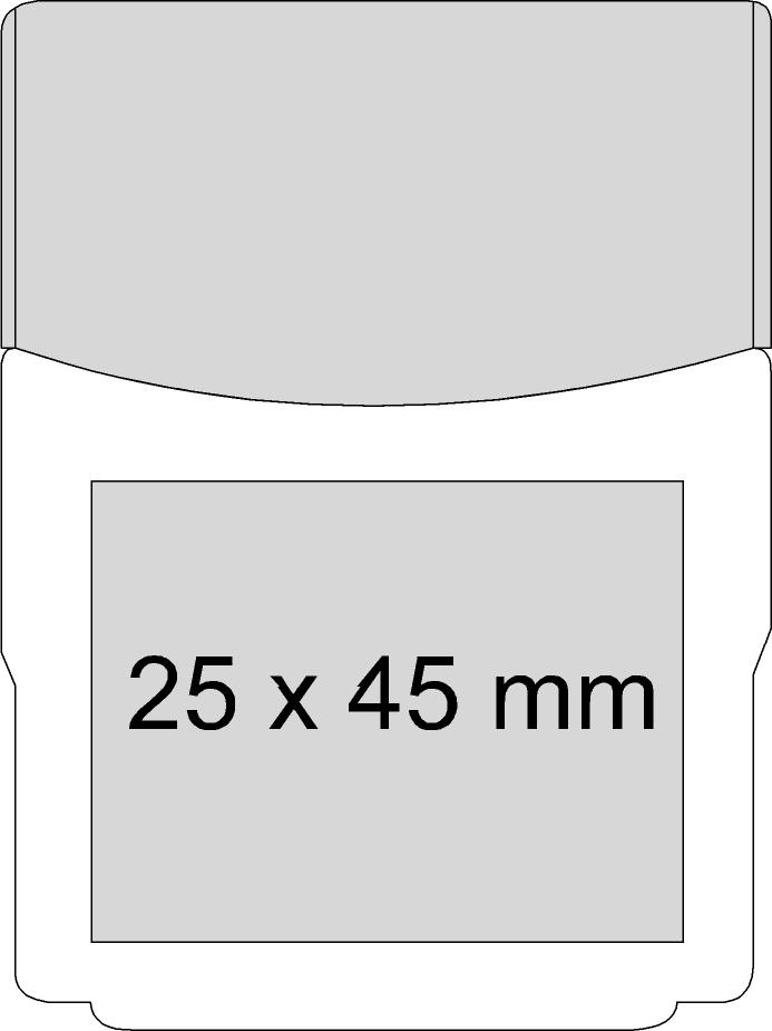 Vorderseite, Tampondruck (25 x 45 mm) | Standskizze